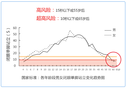 注:左右脚时间误差较大,应分别记录; 老年人需要在监护人保护下进行测试。